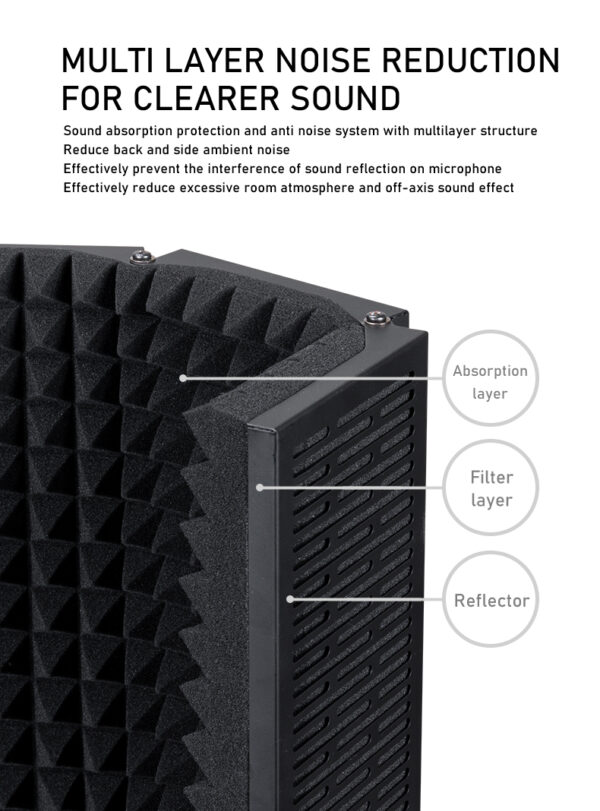 ๐ค [FLEXIBILITY & CONVENIENCE]: – Five foldable end panels allowing angle adjustments for optimal isolation. The compact design, lightweight construction, and foldability allow you to carry it easily anywhere. Recommended for dubbing, recording, singing, podcasting, acoustic recording, and sound booth.