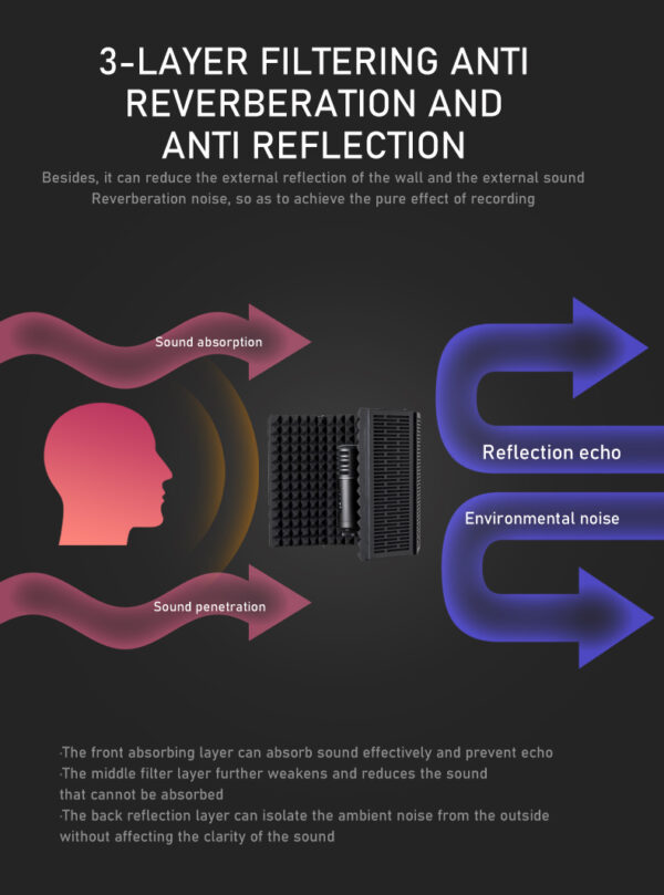 ๐ค [ELIMINATE INTERFERENCE]: – The inner side is made up of high-density multi-layered insulation foam for noise reflection & absorption while recording.