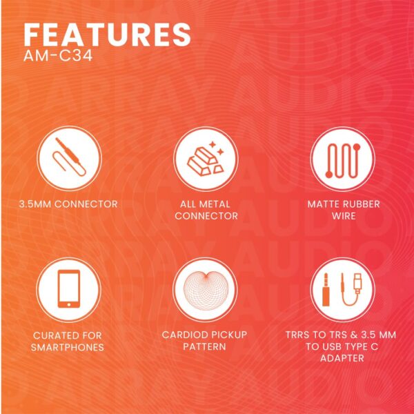 Audio Array AM-C34 Lapel Microphone | 1M Long & Strong Cable | 3.5mm Audio Jack | TRRS to TRS & TRRS to USB Type C adapters | Omnidirectional Pickup | Mic Cover & Leather Carry Bag Included