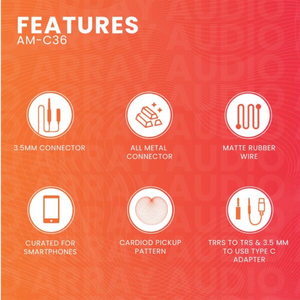 Audio Array AM-C36 Lapel Microphone | 1M Long & Strong Cable | 3.5mm TRRS| 3.5mm TRRS Port, TRRS to TRS & TRRS to USB Type C adapters | Omnidirectional Pickup | Mic Cover & Leather Bag Included