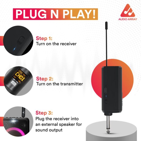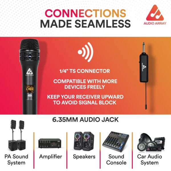 Audio Array AM-W33 UHF Solo Wireless Microphone Set | 1200mAh 6-8 Hours Receiver Battery Backup | Range up to 50M | Karaoke Singing, Wedding, DJ, Church | PA System, Amplifier, Mixer, Party Box
