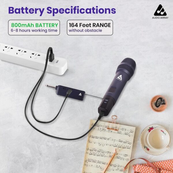 - 🔋 [RECHARGEABLE MIC & RECEIVER]: Equipped with a 3.7V 18650 800mAh lithium-ion battery, the Mic & receiver charges in just 1-2 hours and delivers 6-8 hours of continuous use. The microphone system includes a 6.35mm audio output for high-quality sound. (Note: Not compatible with USB Type-C to Type-C charging cables & 3.5mm aux input)