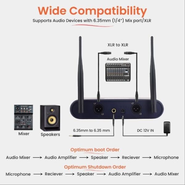 - π₯ [High quality Performance]: π€ Includes two microphones with individual volume controls, making it perfect for duets. 48kHz/24bit high quality is suitable for live performances, outdoor events, weddings, and conferences with simple setup and reliable performance. Requires use with amplifier, speaker, mixer, or PA system. (Not compatible with 3.5mm aux input)