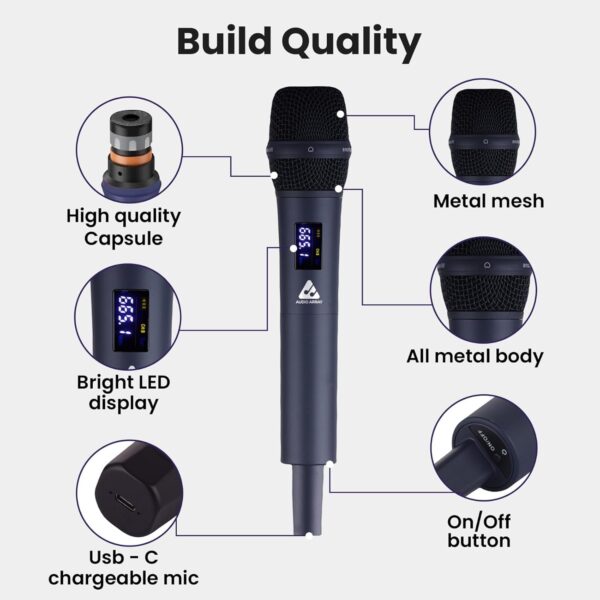 - π€ [Long Range & anti-interference]: π‘ Minimize interference with dual-channel UHF technology ensuring clear, uninterrupted audio for musicians and presenters. Perfect for DJs, churches, and classrooms. It is suggested to purchase recharable AA batteries to use with the microphones. Type-C charging port provided on the mics.