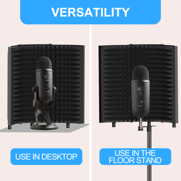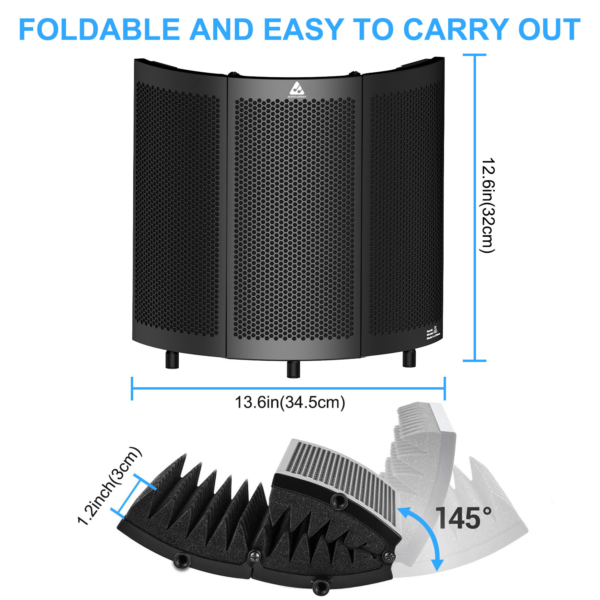 | 馃帳[FLEXIBILITY & CONVENIENCE]: – The shield features two foldable end panels allowing angle adjustments for optimal isolation. The compact design, lightweight construction, and foldability allow you to carry it easily anywhere. It is a recommended accessory for dubbing, recording, singing, podcasting, acoustic recording and sound booth. |