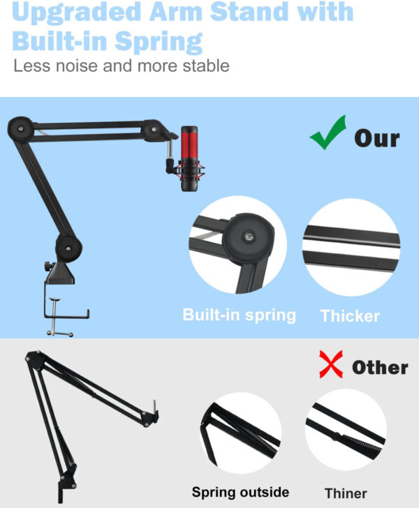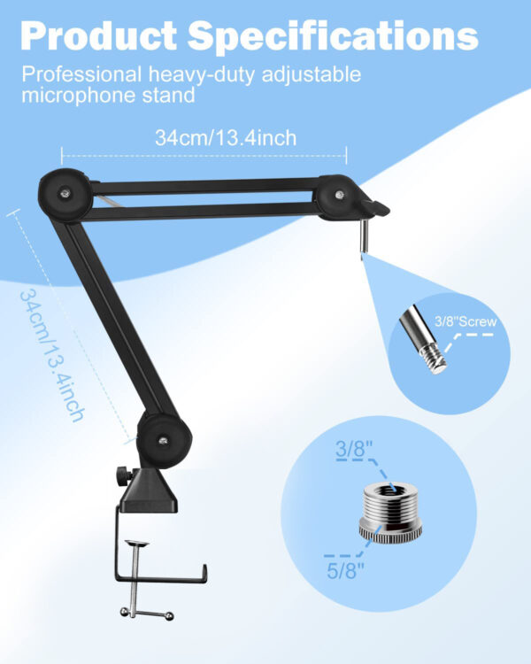 Audio Array Short Springless Microphone Arm Stand with 3/8″ To 5/8″ Adapter, Mic Clip, Upgraded Heavy Duty Stand With 1.2 Kg Weight Capacity ( AA-13 )
