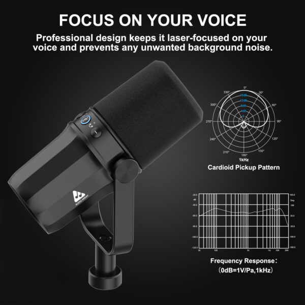 | 🎤PROFESSIONAL SOUND QUALITY – This microphone features the combination of dynamic cartridge with unidirectional pick-up pattern. It offers a wide frequency range of 20Hz-20kHz with a great voice isolation providing S/N ratio 95dB and sampling ratio of 96kHz/24 BIt. |