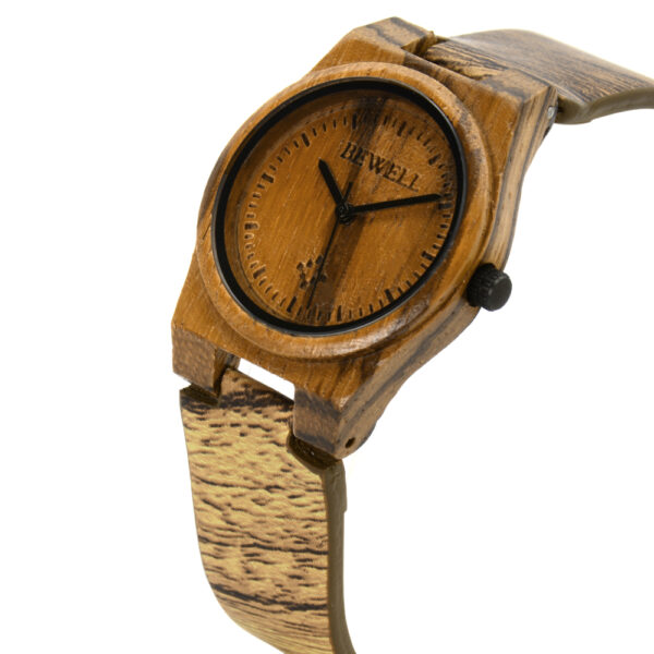 Bewell by Pinkfina, Zebra Wood Watch for Women, equipped with Japanese Quartz Movement, Life Water Resistant