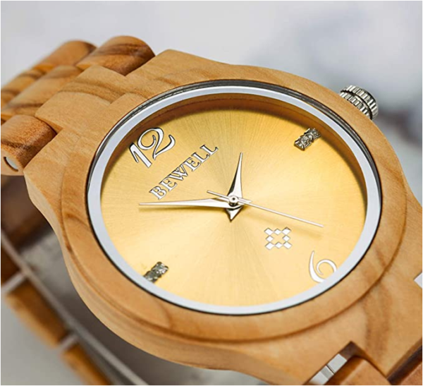 Bewell by Pinkfina, Olive Wood Watch, equipped with Japan Quartz Movement ,Life Water Resistant Watch