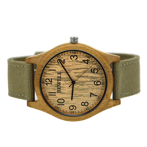Main Features: Imported Japan quartz movement, keep the time precise, very durable, a smooth design which will not hurt your wrist. Canvas strap, more durable to use, water-resistant, not easy to fade. The wooden texture surface comes with a countryside life-breath, a nice choice for a man on multiple occasions.