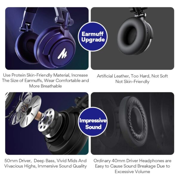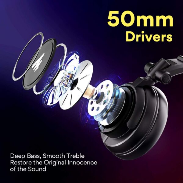 • 50mm Driver for Professional Studio Monitoring: Hi-Fi sound studio headphone with 50mm large speaker will bring you clear voice, deep bass, high resolution and crisp high tones, and immersive feeling