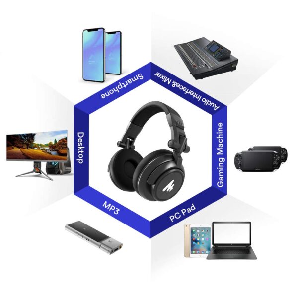 Maono AU-MH601 Professional DJ Studio Monitor Wired Headphones, Over Ear and Detachable Plug & Cable with 50mm Driver for DJ, Studio and Microphone Recording (Black)