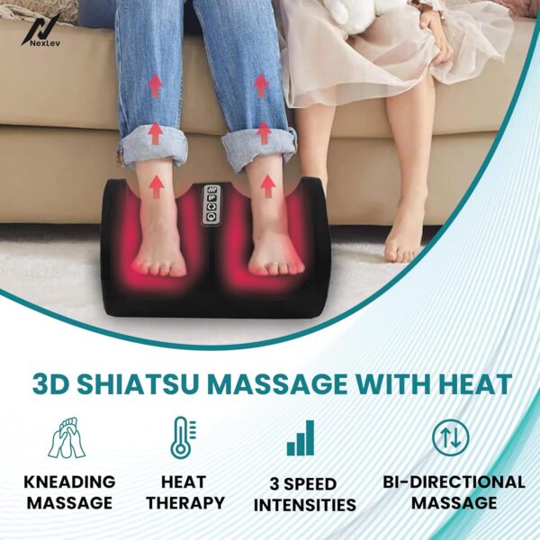 Nexlev Foot Massager for Pain Relief| Heat & Kneading function| Corded Electric Foot Massage Machine for Home | Relieves Strained Muscles| Improves Blood Circulation| Customizable Settings| 3 Speed Modes| Mini FM-02
