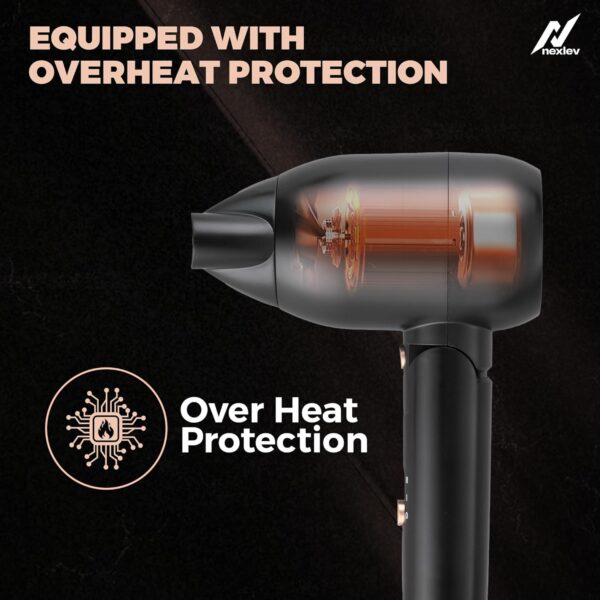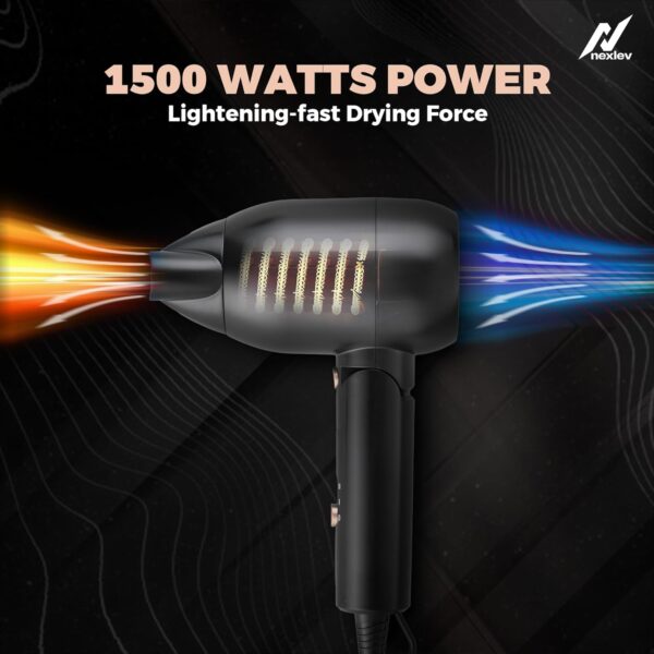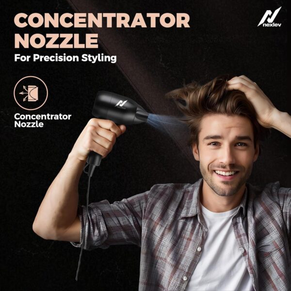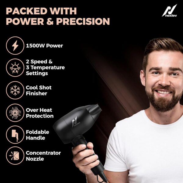 Nexlev Just Style Hair Dryer For Men | Lightweight Foldable Hair Dryer | Overheat Protection Technology | 1500W Powerful Motor for Quick & Easy Blowdry | 3 Heat Settings & Cool Shot Function | Concentrator Nozzle (HD-02 Men)