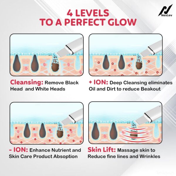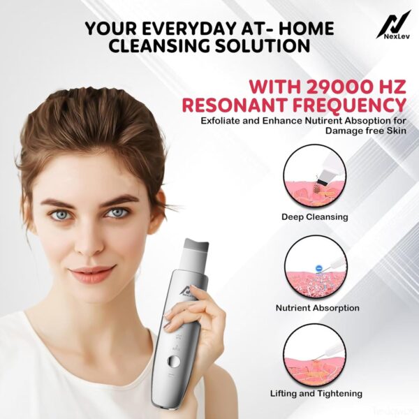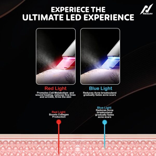 Nexlev Skin Scrubber |Red & Blue LED Therapy| Blackhead Remover| Pore Cleaner| Skin Lifting & tightening, wrinkle remover| 2 Silicone Cleaning Heads| Facial Cleansing|Type C Charging| Elixir Pro LE-03