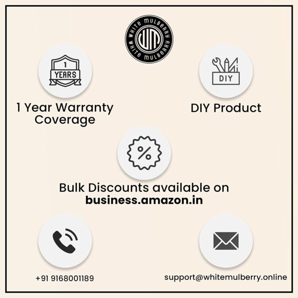 | Warranty Summary | ‎Warranty – Carry-in warranty valid for 1 year from the date of delivery only on manufacturing defects. The warranty will not be applicable in the following cases : a. Damage due to inappropriate usage. b. Any modifications or alterations made to the products post purchase. c. Normal wear and tear with time. d. Not following the care instructions. How to avail the warranty? To claim your warranty please contact us on our customer care number – +91 9168001189 or email us at support@whitemulberry.online |