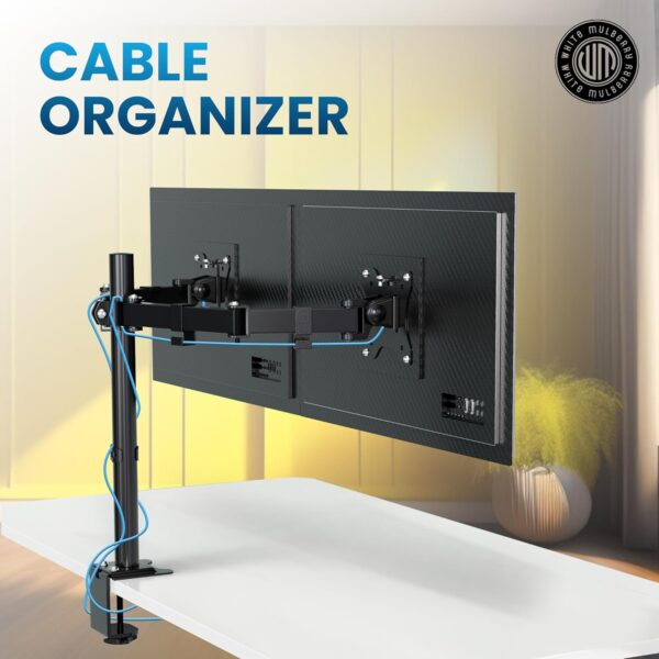 White Mulberry Height Adjustable Monitor Arm | Desk Mounted Monitor Stand for 15-32 Inch Monitor | 9Kg Weight Capacity | Monitor Arm Stand for Desk| Adjustable Metal Desk Monitor Mount – Dual Screen