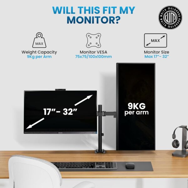- Compatibility : This monitor mounts arm made with sturdy steel design. This dual monitor fits screens 13-Inch to 32-Inch. With ergonomically designed computer screens and monitors will provide sturdy support and precise balance.